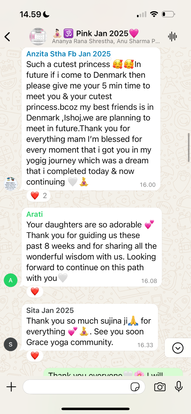 Starting yoga with Sujina di, has done wonders to my physical, mental, and spiritual health. She was the one for me and many women out there.